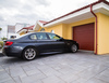Garageuppfart med betongplattorna Basic i antracit. Betongplattorna som har använts har olika storlekar för att skapa ett snyggt mönster.