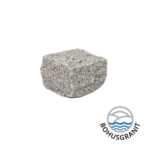 Gråfärgad tumlad gatsten i klassisk bohusgranit, halvhöjd.