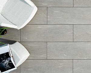 Italiensk granitkeramikplatta som estetiskt efterliknar gråmelerad granit på ett naturtroget och genuint sätt. Samma vackra utseende som naturlig granit samtidigt som materialet har många fördelaktiga tekniska egenskaper.
